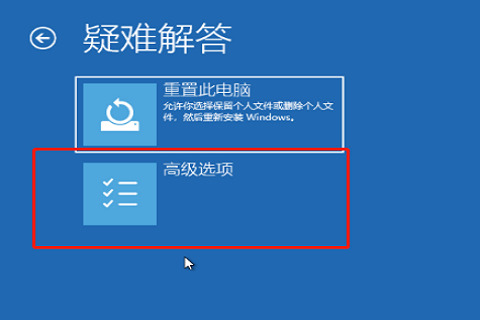 1、首先,连续开机按电源键重启3次,开机会进入“高级模式”,在选择“疑难解答”选项;