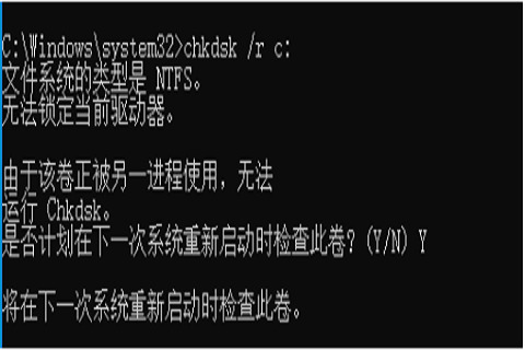 6、在输入“chkdsk /r c:”,系统就会自动检测错误;