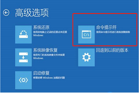 3、接着,在高级选项界面中,点击“命令提示符”;