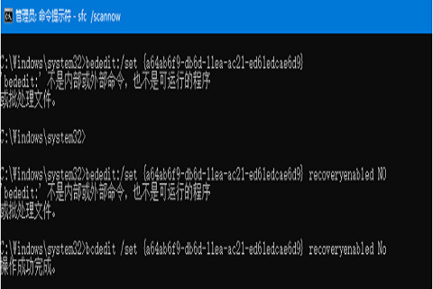 5、然后输入“bcdedit /set {GUID} recoveryenabled No”按回车键,就可以暂时停止自动修复;