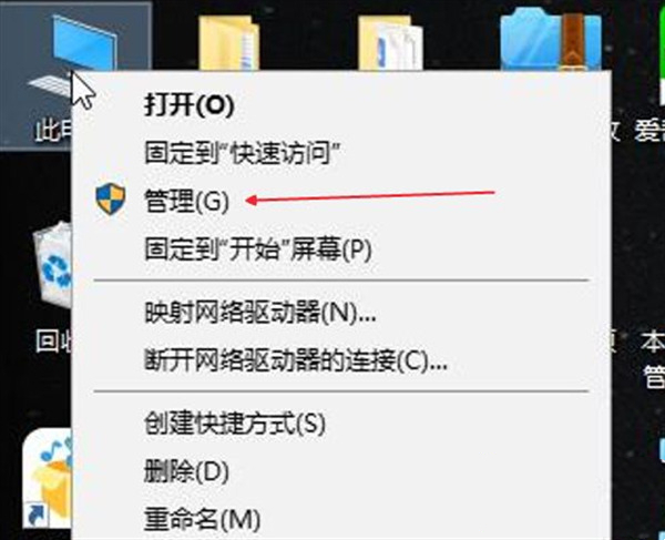 2、在连接好的情况下,键盘灯不亮,就右键点击“此电脑”,然后点击“管理”;