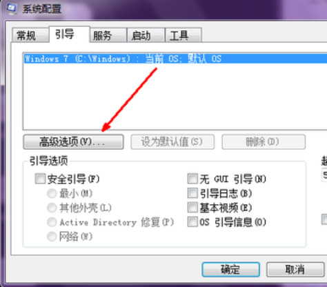 4.然后在此选项卡下有一个高级选项按钮,我们可以从此处设置处理器核心数,单击此按钮。