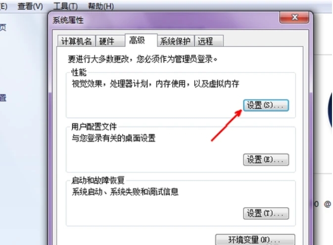 3.在系统属性页面的以下性能项目中,单击此设置按钮可以设置系统的视觉效果,因为打开系统的特殊效果不仅会影响速度,占用资源,而且还会一定程度的创业影响。