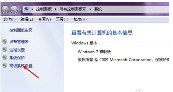 2.在系统属性页面中,单击左侧导航栏中的高级系统设置选项。
