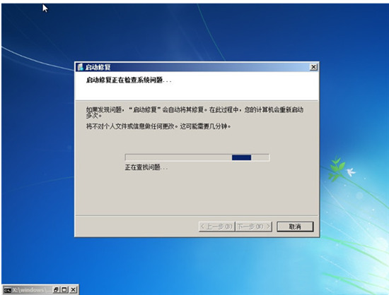 5、 点击“启动修复”,那么win7系统将会自动修复遇到大家遇到的win电脑开机进不了系统故障。