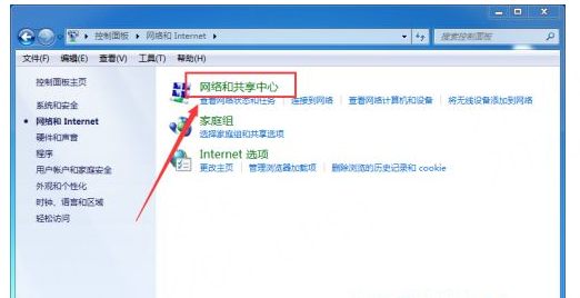 3、接下来点击右侧的【网络和共享中心】,如下图所示。
