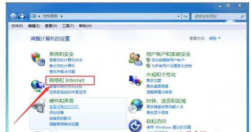 2、然后在电脑桌面上会弹出一个【控制面板】窗口,点击【网络和Internet】,如下图所示。