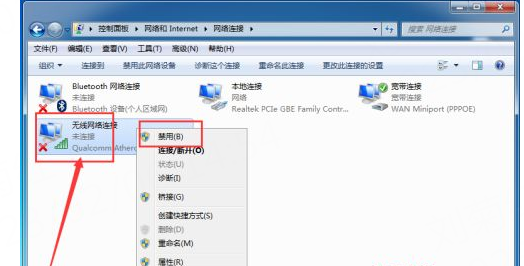 5、最后再看一下【无线网络连接】是否被禁用,如果“无线网络连接”的图标是彩色的就说明是启用的,或者右击【无线网络连接】即可查看是否启动,如下图所示。