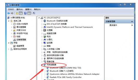 3、然后在右侧就会出现相关的内容,点击【网络适配器】,如果网络适配器中含有黄色感叹号的话,则说明硬件驱动有问题,可以重新安装驱动,如下图所示。