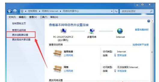4、然后再点击左侧的【更改适配器】设置,如下图所示。