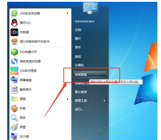 1、首先点击电脑左侧的【开始图标】,然后在弹出的上拉菜单中,点击【控制面板】,如下图所示。