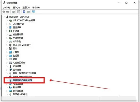 2、进入设备管理器窗口,找到并点击“通用串行总线控制器”;