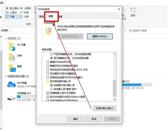 2、这样便进入文件夹选项窗口,点击上方的“查看”;