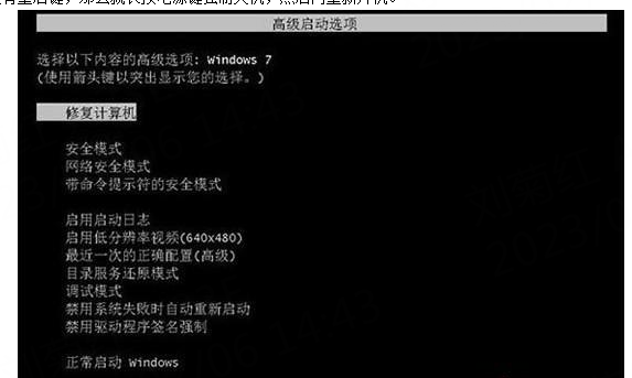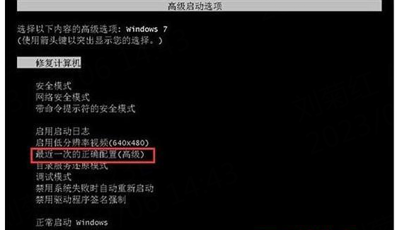 6、假如以上方法无法修复大家的Win7电脑开机无法进入系统问题。那么也是可以在开机按F8进入安全模式后选择“最近一次的正确配置”来进入系统。