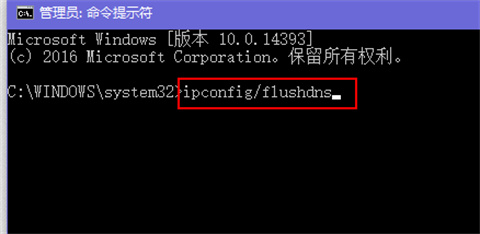 2、打开管理员命令窗口输入清空dns缓存命令:“ipconfig/flushdns”;