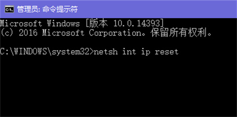 4、最后输入:netsh int ip reset 注:重设IP。上述步骤完成后重启电脑即可解决问题