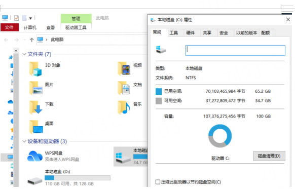 当然了,我们不能仅仅是对储存的文件进行大小的压缩,还需定期对计算机的磁盘进行清理,优化磁盘的使用空间,释放内存,合理地规划运用各个磁盘的空间使用。我们只需选中磁盘,右键选择【属性】,即可看到右下角的【磁盘清理】选项了。